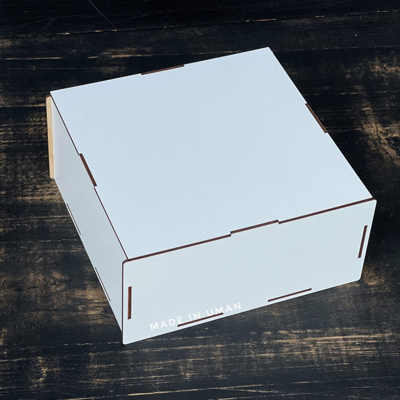 Коробка доступна у двох кольорах — тепла темна деревина або світлий натуральний відтінок.